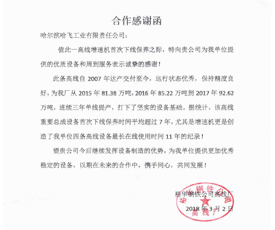哈爾濱哈飛工業(yè)有限責任公司旗下的機電設(shè)備制造產(chǎn)業(yè)是目前國內(nèi)規(guī)模大、專業(yè)的高速線材軋機和棒材軋機整機及備件的生產(chǎn)制造企業(yè)。公司現(xiàn)坐落于哈爾濱市平房區(qū)汽車零部件工業(yè)園B區(qū),占地面積30000多平方米。現(xiàn)有員工近550人,其中具有中高級職稱的研發(fā)及工程技術(shù)人員100余人。 公司曾獲得冶金部授予的“高線軋機設(shè)備優(yōu)單位”稱號、國家技術(shù)進步二等獎等獎項,公司生產(chǎn)的十八項高線軋機重要部件通過了技術(shù)鑒定... +MORE